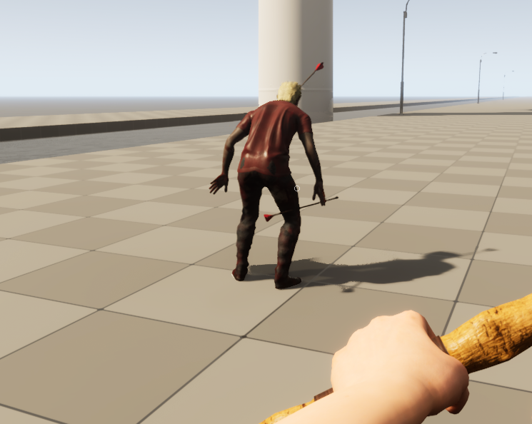 We did some work on arrow behavior in game, fixing how they collide with zombies and characters. There's still work to be done in multiplayer but at the minimum they should collide properly with crawlers now.